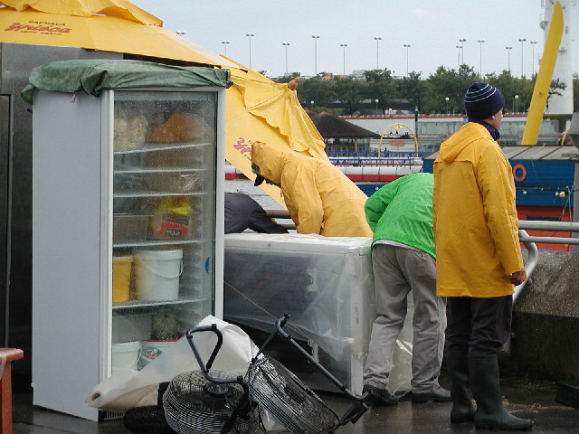Gastwirte an der Copa Cagrana bringen die wichtigsten Geräte in Sicherheit