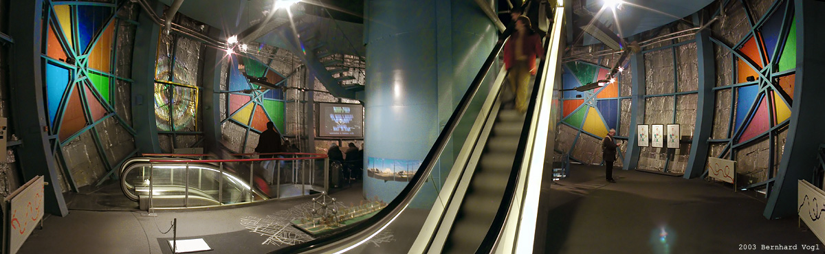 Das Brüsseler Atomium mit der Ausstellung des Jahres 2003: CHARLEBLITZ